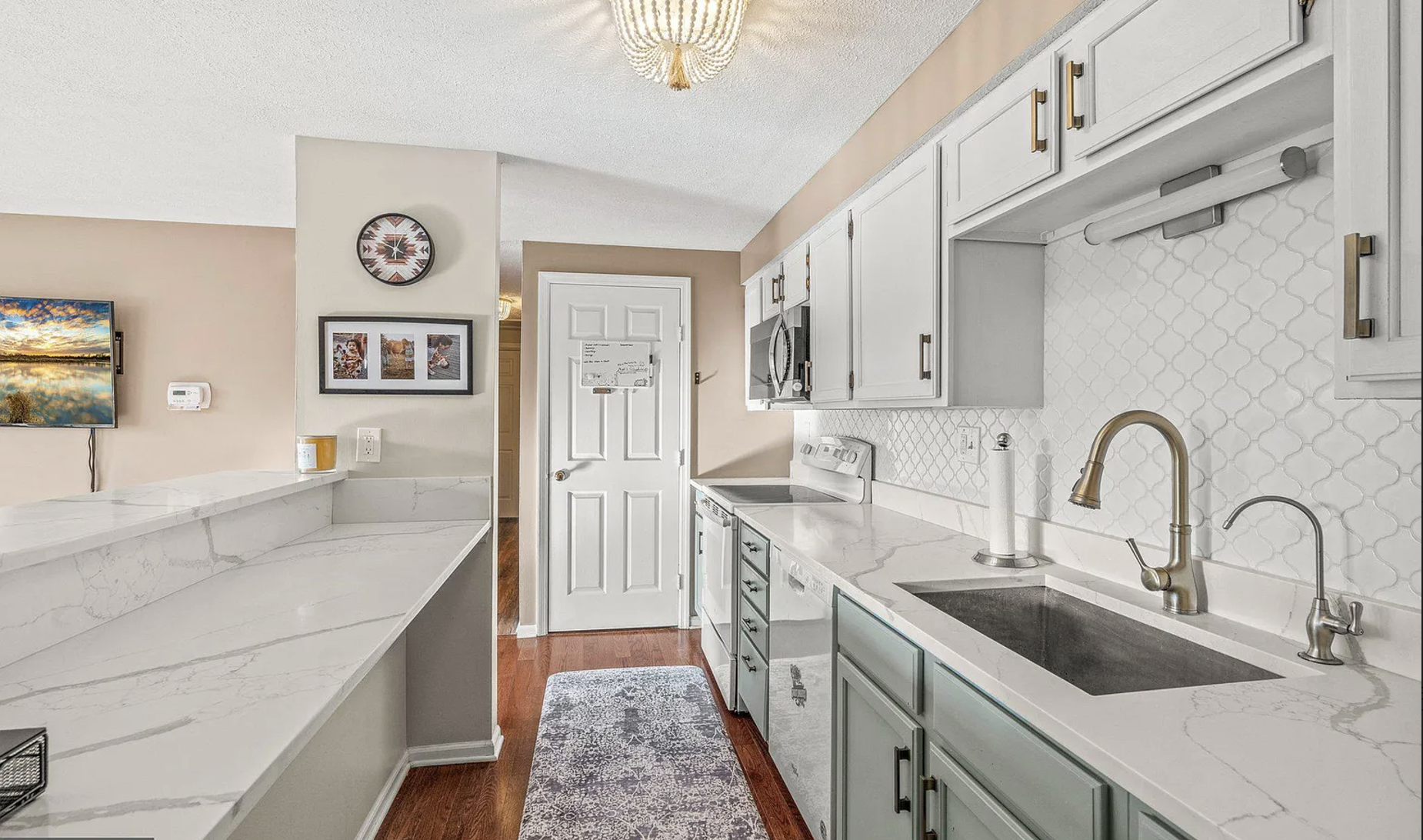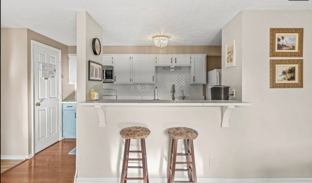 Sitting on the top floor of the most tucked away building in the desirable Shannon Greene neighborhood sits 59 Cranberry Ct. Entering the condo you will see an abundance of natural light coming in through the south facing double sliding glass doors. There is gorgeous cherry engineered hardwood flooring throughout the open concept dining, living & galley kitchen space. There is a wood burning fireplace in the dining room area for those cold winter nights. You’ll find a coat closet and pantry here as well as updated bohemian light fixtures. The kitchen features stunning quartz countertops with a raised breakfast bar, deep stainless steel sink, newer appliances, garbage disposal, reverse osmosis water filtration through a designated tap & a white porcelain backsplash. The laundry room with extra storage & top loading washer and dryer is also off of the kitchen area. The hallway and both bedrooms were updated with waterproof & scratch proof wood laminate flooring in 2021. Each bedroom has ample closet space and ceiling fans. BOTH FULL BATHROOMS were updated in 2021 with waterproof luxury vinyl tile flooring & new vanities. Out onto the oversized balcony you can enjoy picturesque wooded views and bird watching. (The balcony gets plenty of sunlight which is great for plants/gardening & you also have a clear view of the night sky.) Outside on the side of the building is an additional, sizable storage unit. This is the largest style unit in the neighborhood that also faces the woods. Don’t forget about all the amazing amenities this community offers like access to the lake for lounging, fishing or non motorized water sports, the outdoor pool open in the summer months, hockey rink, tennis courts, basketball courts, tot lots, hiking trails, dog park & more!